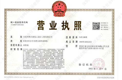 10月26日在大慶開發(fā)區(qū)注冊(cè)大慶華凱石油化工設(shè)計(jì)工程有限公司;